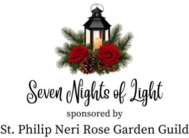 The St. Philip Neri Rose Garden Guild will be placing candlelit lanterns around the Rose Garden and in front of the Church in celebration of the Nativity of the Lord. They will remain lighted from Christmas Eve through New Year’s Eve.
